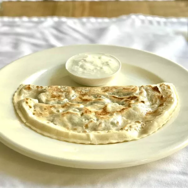 Традиційний пиріжок із прісного тіста з сиром та шпінатом. Готується на розпеченій сухій сковороді без масла. Три і більше янтиків подаються як комбо, з салатом і соусами.