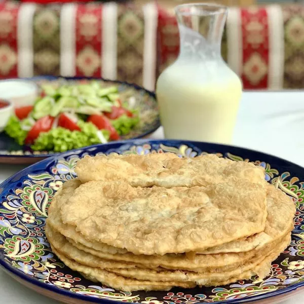 Янтик з фаршем із баранини, цибулею та спеціями. Готується на розпеченій сухій сковороді без масла. Після приготування змащений вершковим маслом. Три і більше янтиків подаються з салатом і соусами.