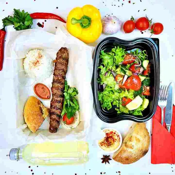 Традиційний кебаб з дрібно рубаного фаршу яловичини з цибулею і спеціями. Подається з маринованою цибулею та соусом. Включає гарнір - рис, булгур або спаржеву квасолю.