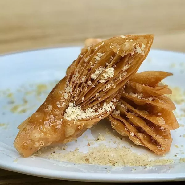 Традиційні пиріжки трикутної форми з листкового тіста та начинкою з яловичого січеного мʼяса, цибулі та спецій. Випікається в печі. Дві та більше самси подаються як комбо з салатом і соусами