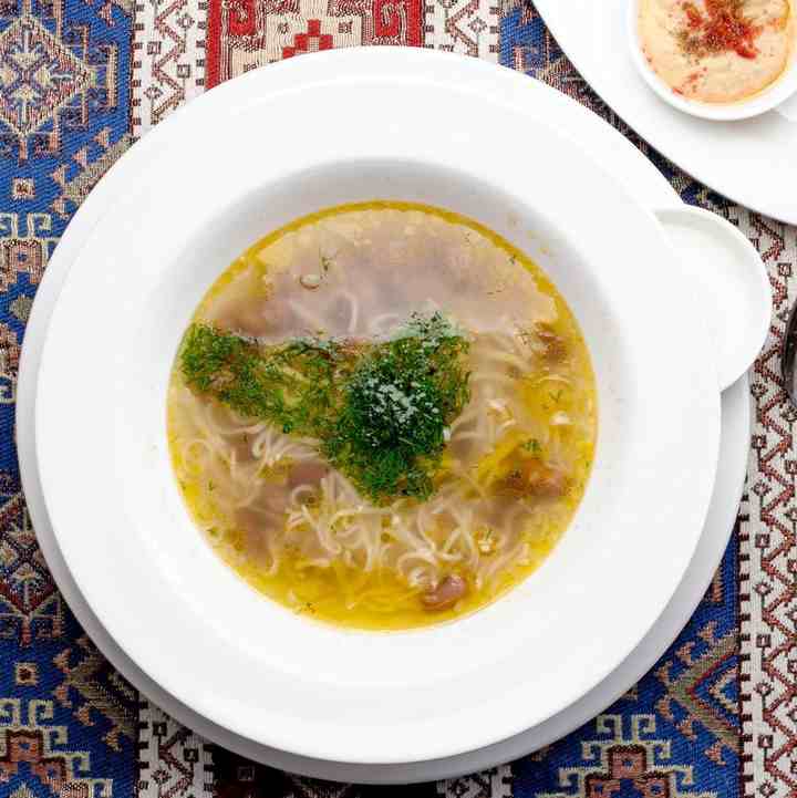 Традиційний кримськотатарьский суп з квасолею і домашньою локшиною на курячому бульйоні.