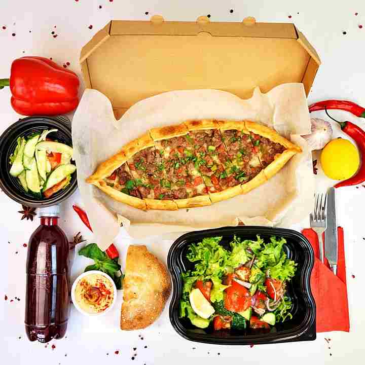 Піде з м'ясом і овочами: 1 шт Літній салат: 0.5 порції Напій на вибір (айран, хошаф, щербет): 0.5 л в подарунок Коржик і хумус: теж в подарунок